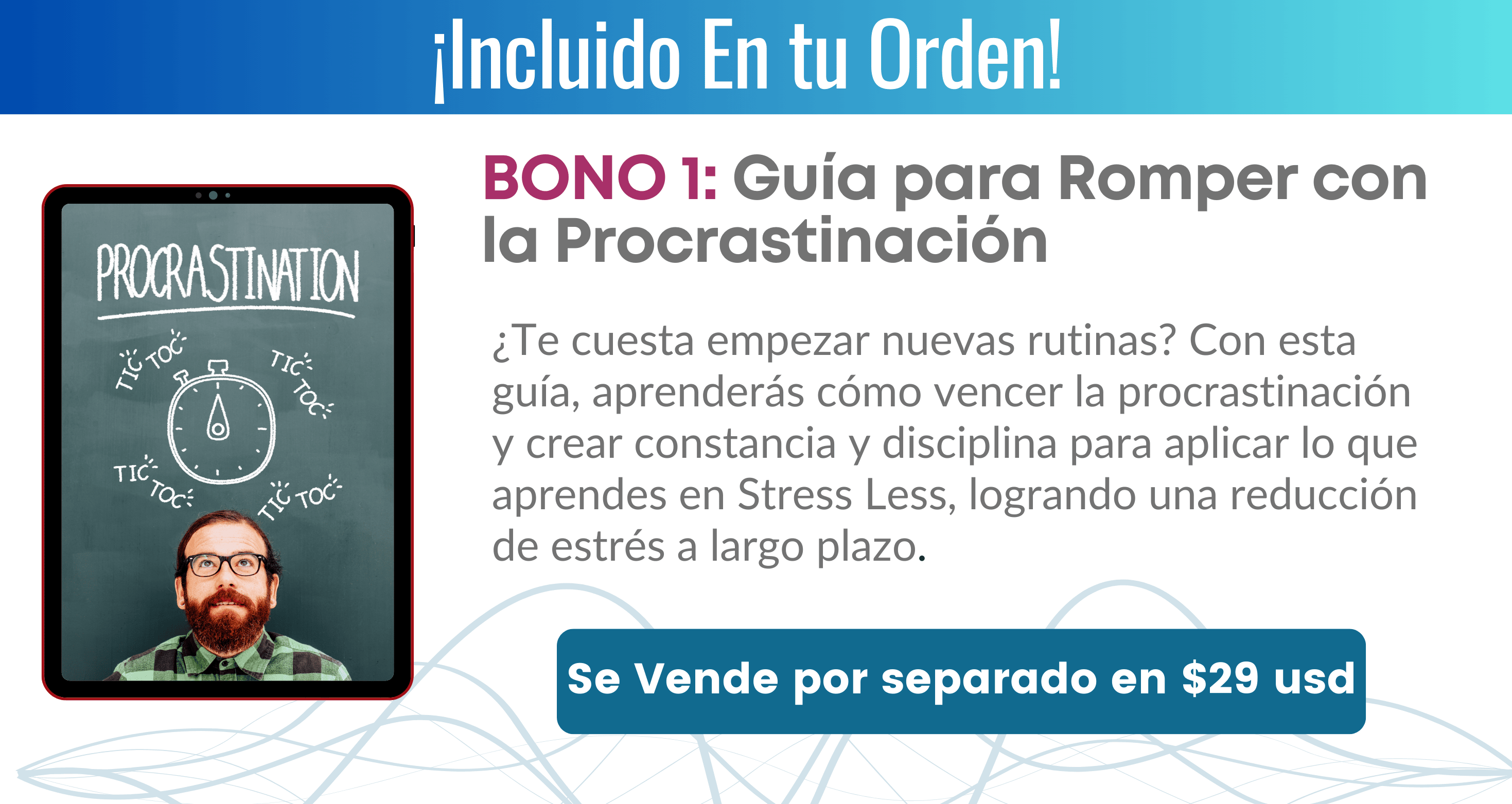 • BONO #1: Guía para romper con la Procrastinación Valorado en $29 USD