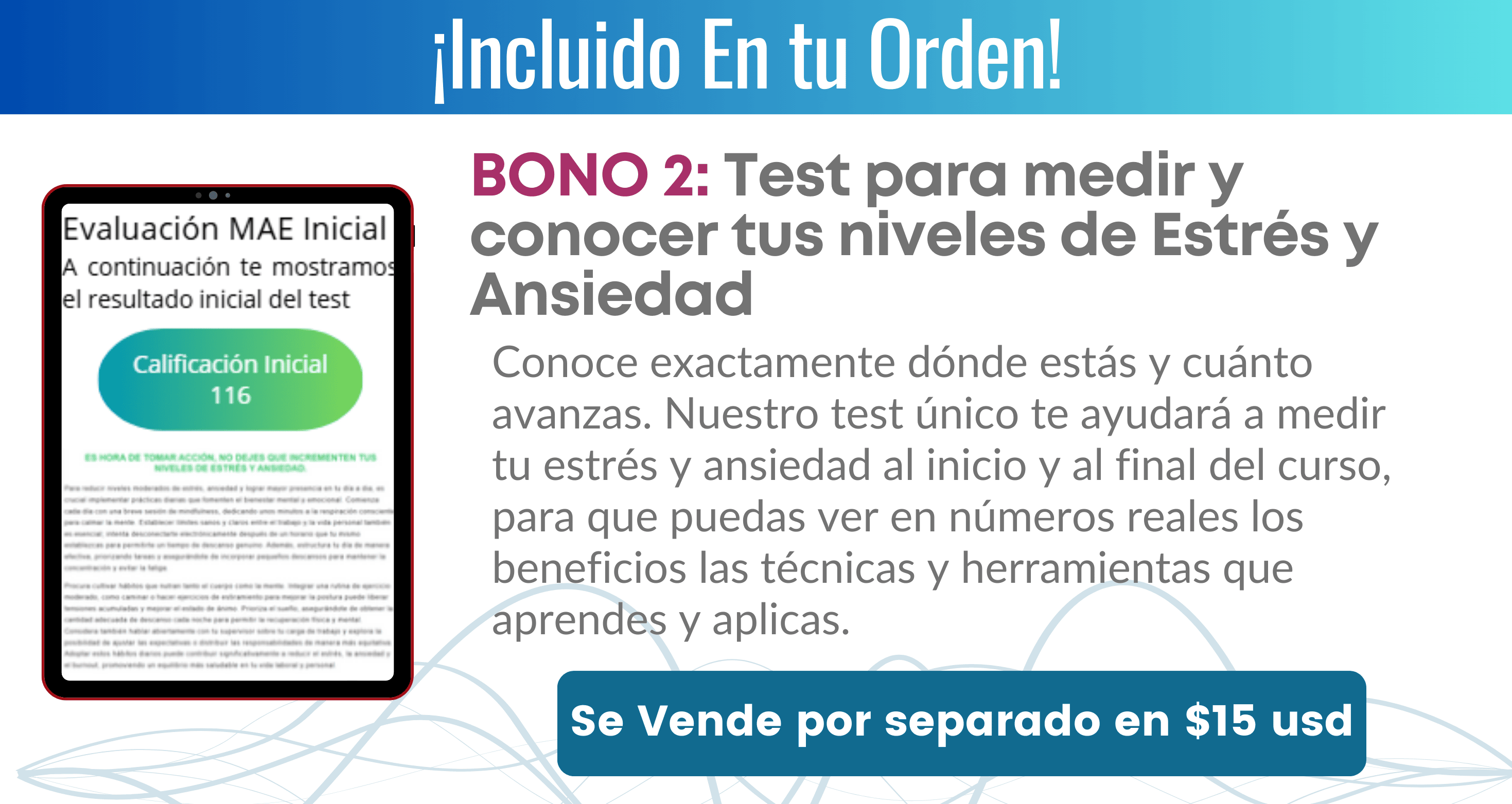 • BONO #2: Test para medir y conocer tus niveles de estrés y ansiedad Valorado en $15 USD